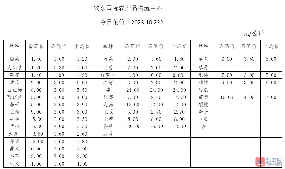 【果菜行情】10.22日乐亭县冀东果菜批发市场最新发布