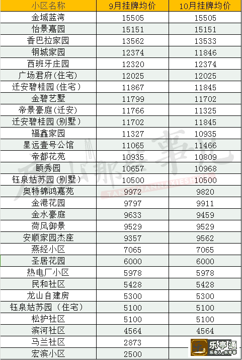 最新!乐亭10月房价出炉,快看你家房子涨没涨?