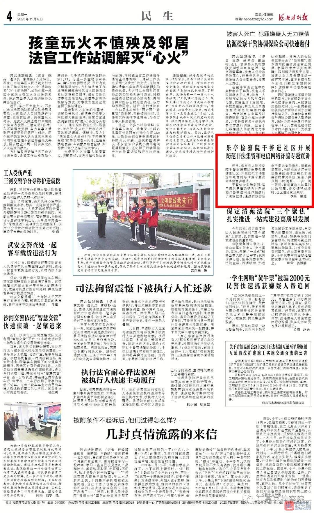 《河北法制报》刊发:乐亭检察院干警进社区开展防范非法集资和电信网络诈骗专题宣讲