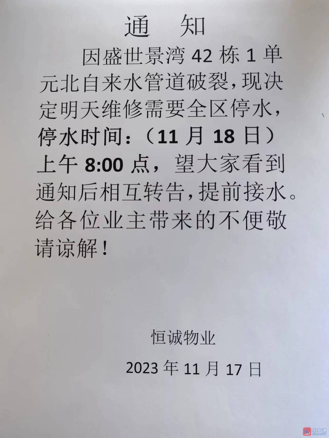 停水通知!乐亭一小区管道破裂,需全区停水,请相互转告