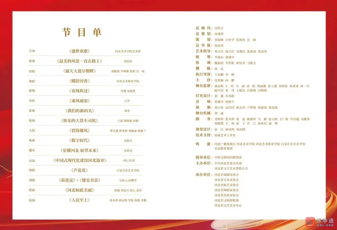 12月1日,由中共河北省委宣传部、河北省文联主办的“新时代•新征程•新伟业”中国式现代化建设河北篇章优秀文艺作品汇演暨“燕赵欢歌”文艺精品展演在石家庄市正定区“河北文艺家之家”剧场举行。由河北省曲艺家协会选送,乐亭县孟庆忠、张旭武策划创作,薛亚群、曹美惠、刘丽丽、郭丽兰表演,宋刚伴奏的乐亭大鼓《碧海雄风》在活动中精彩亮相。![]()