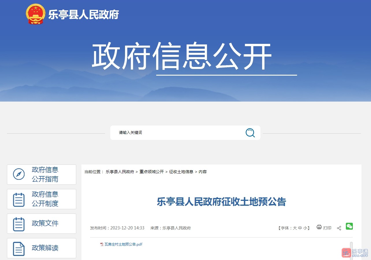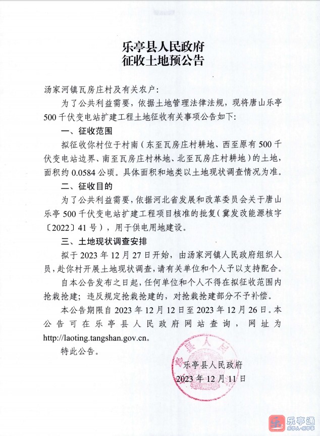 最新!乐亭多地征收土地!有你家吗?