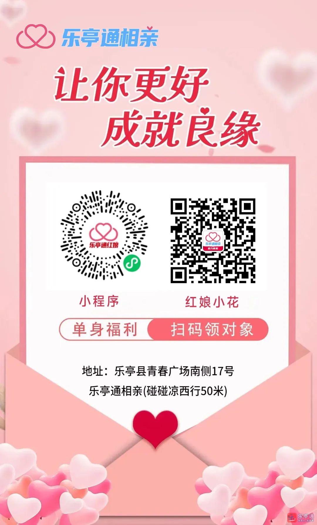 感谢大家一直以来对乐亭通相亲网的信任与厚爱,为了给广大单身男女提供,一个更优雅、舒适、专业的相亲环境,乐亭通相亲自2024年3月9日起,将办公地址搬迁至乐亭县青春广场17号(碰碰凉西行50米)。