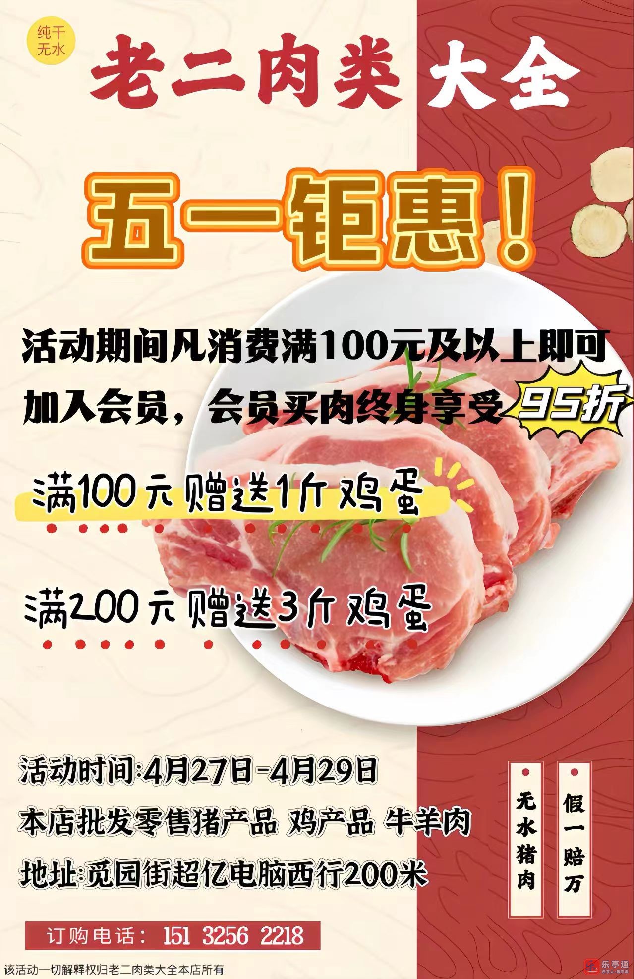 五一将至,老二肉店为回馈广大消费者的支持与厚爱,特此策划一场五一促销活动。