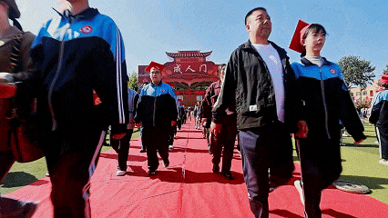 随后,承载着对一中学子祝福的十八响礼炮鸣放,震耳欲聋的炮声点燃了美好青春的开端,激荡着一中学子的热血豪情。家长们为学生戴上成人帽,学生们向父母深情行礼,感恩父母的养育之恩,三次深深的鞠躬饱含着无尽的感激之情。随后,学生和家长互换家书,字里行间表达着成人之情、承诺着成人责任、展望了青春梦想。冠笄之礼后,全体同学头戴成人帽,情牵父母手,在父母陪伴下一起迈过成人、成才、成功三道门,开启了人生崭新的篇章。