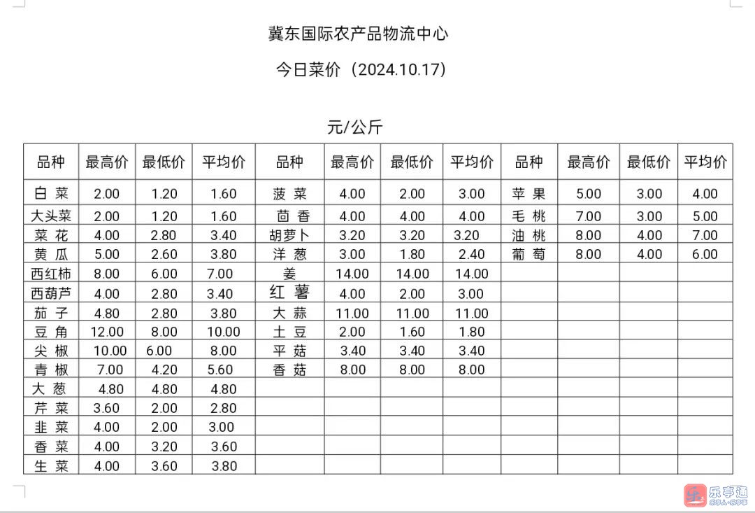 【果菜行情】10月17日乐亭县冀东果菜批发市场最新发布
