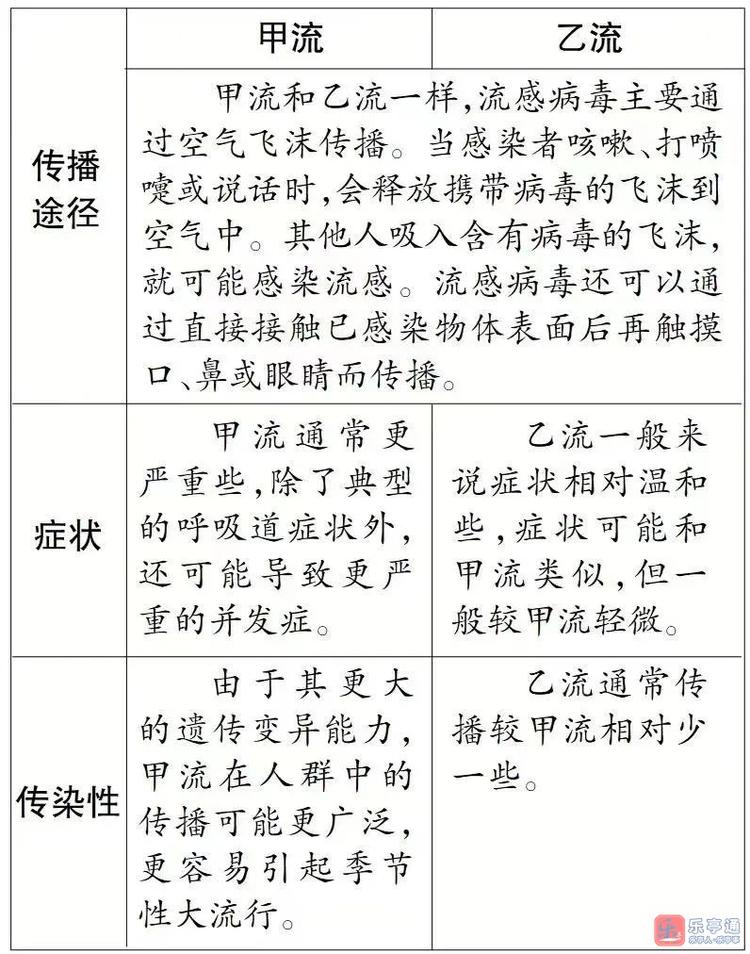 甲流和乙流有什么区别