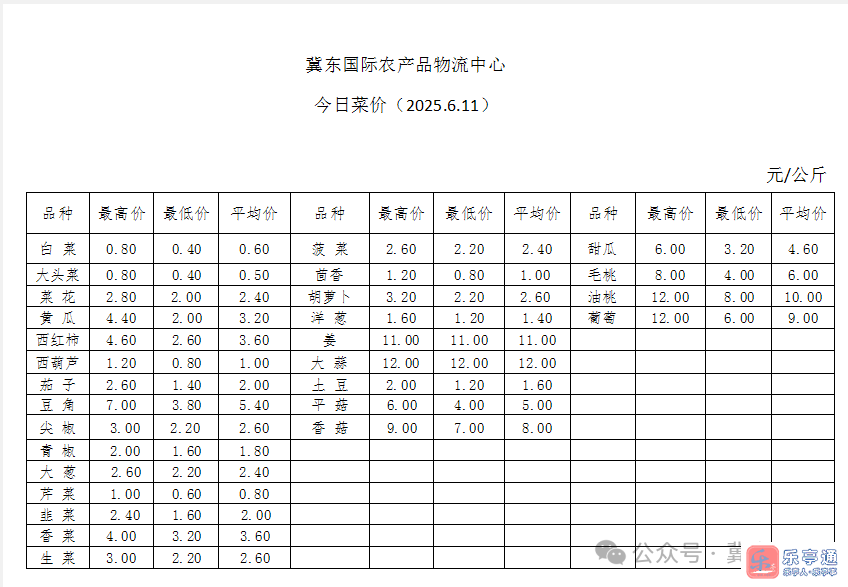 【果菜行情】6.11乐亭县冀东果菜批发市场最新发布