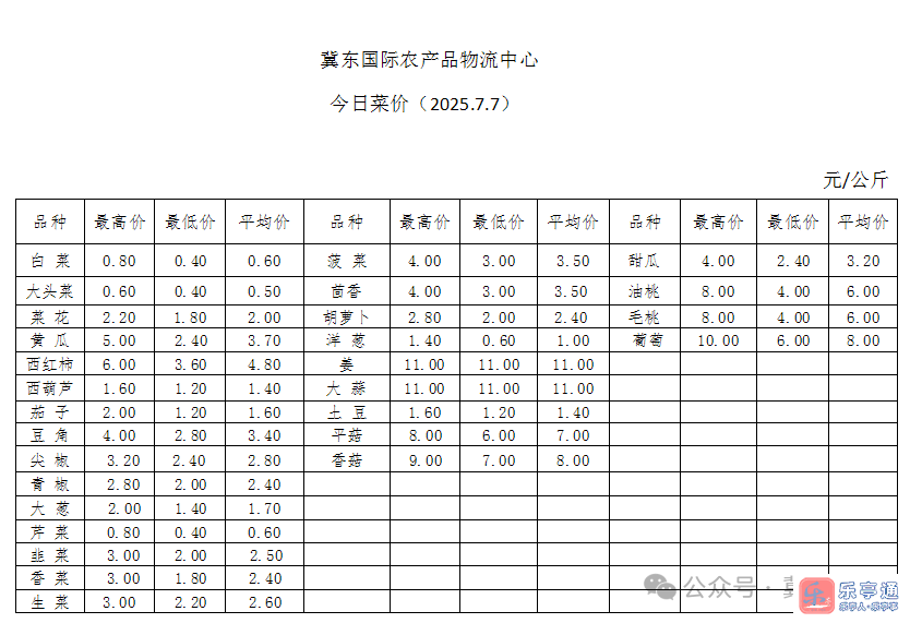 【果菜行情】7.7乐亭县冀东果菜批发市场最新发布