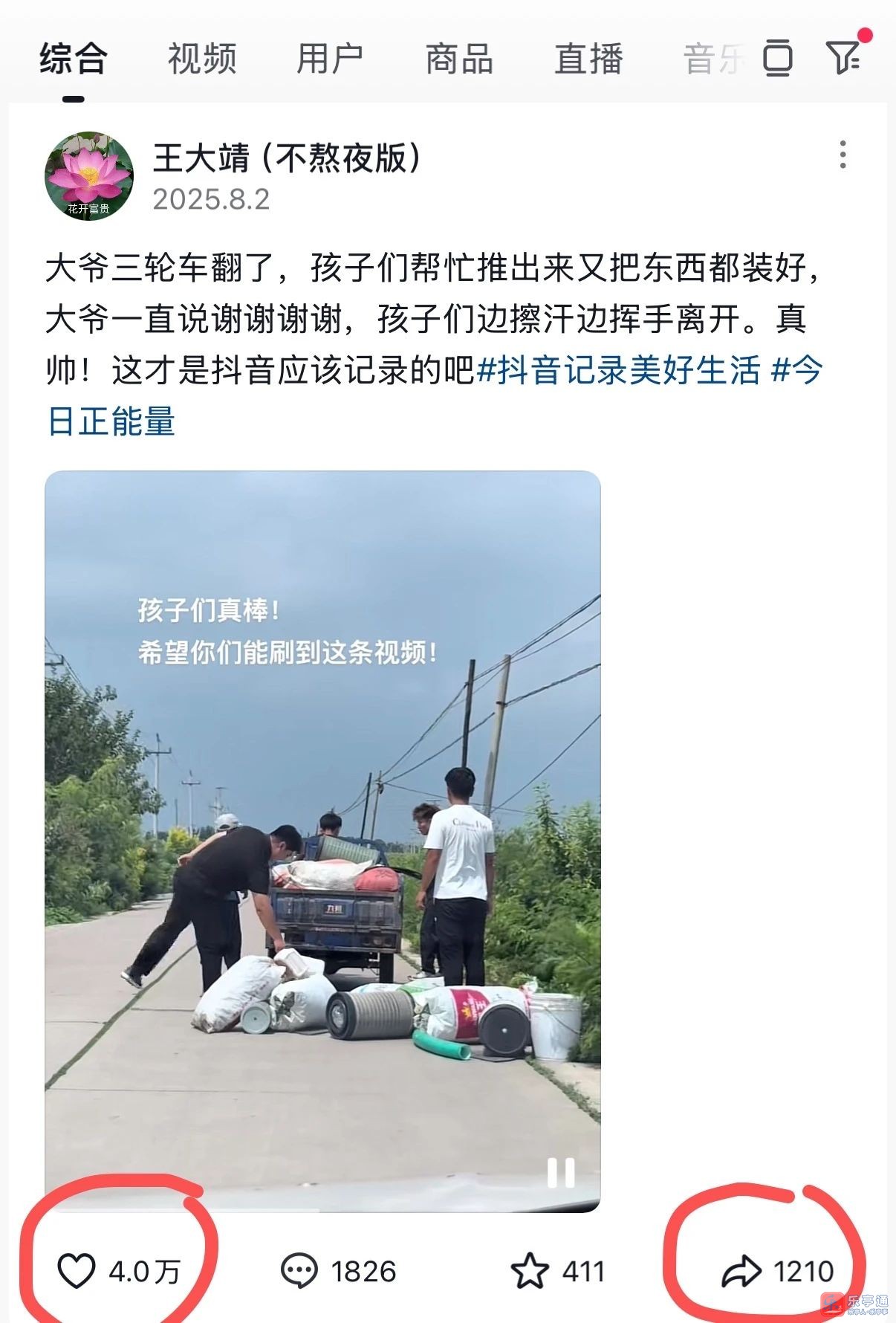 近日,一则 “老人三轮车侧翻,四位小伙儿烈日下帮助陌生老人推车装货” 的视频在抖音、快手、视频号等平台广泛传播,被“光明网”等各级主流媒体纷纷转发,一时间火爆全网。