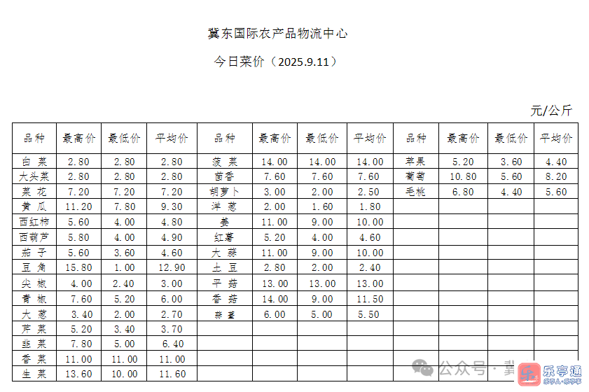【果菜行情】9.11乐亭县冀东果菜批发市场最新发布