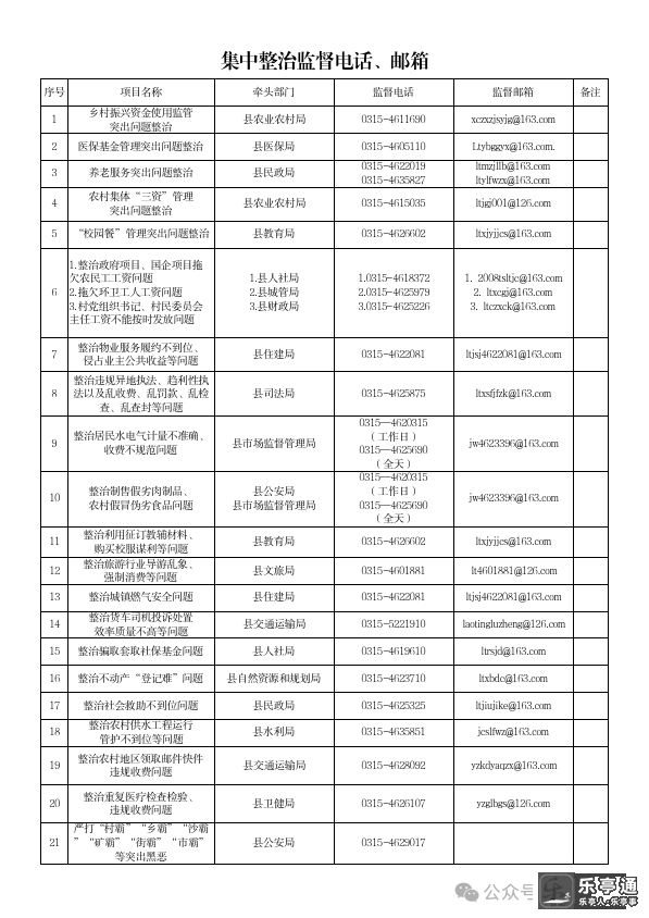 乐亭这些问题集中整治,多部门牵头!监督电话、邮箱公布