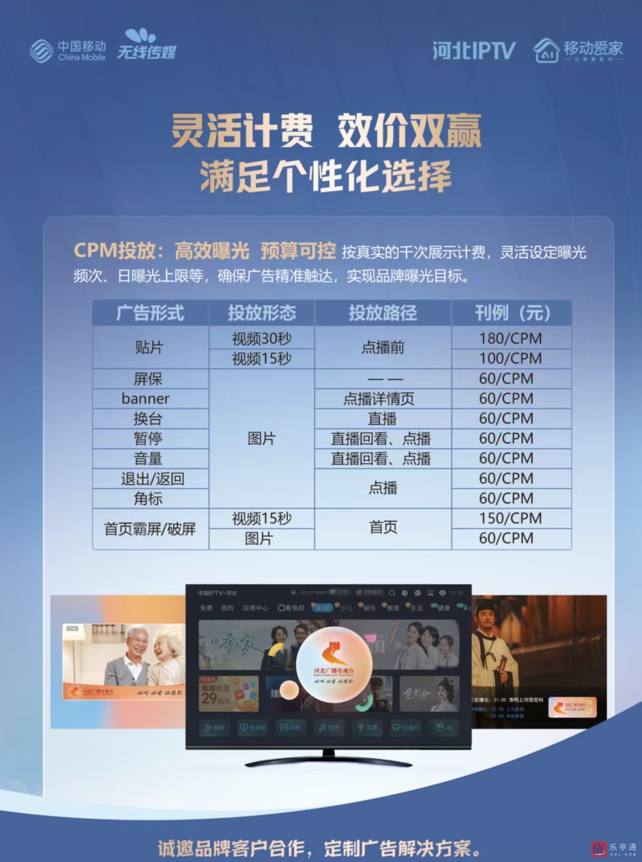 乐亭移动电视已覆盖6万户家庭,有广告需求(开业、庆典、活动等)需要精准推送到每个家庭的