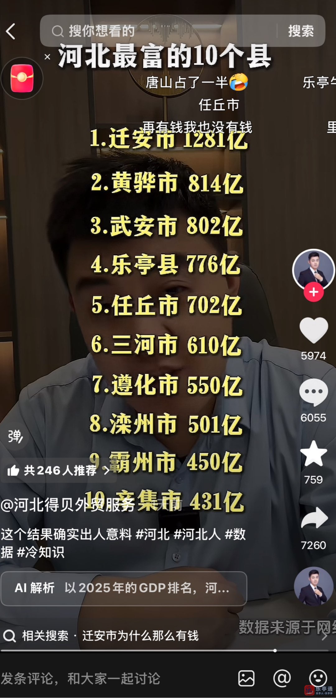 河北最富的十个县,唐山市占了一半,乐亭排名第四