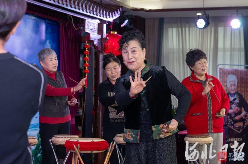 1月14日9时,鼓韵书苑外传来大鼓声。赵蕊的公益课又开始了,学生是乐亭县老年开放大学的十几名学员。