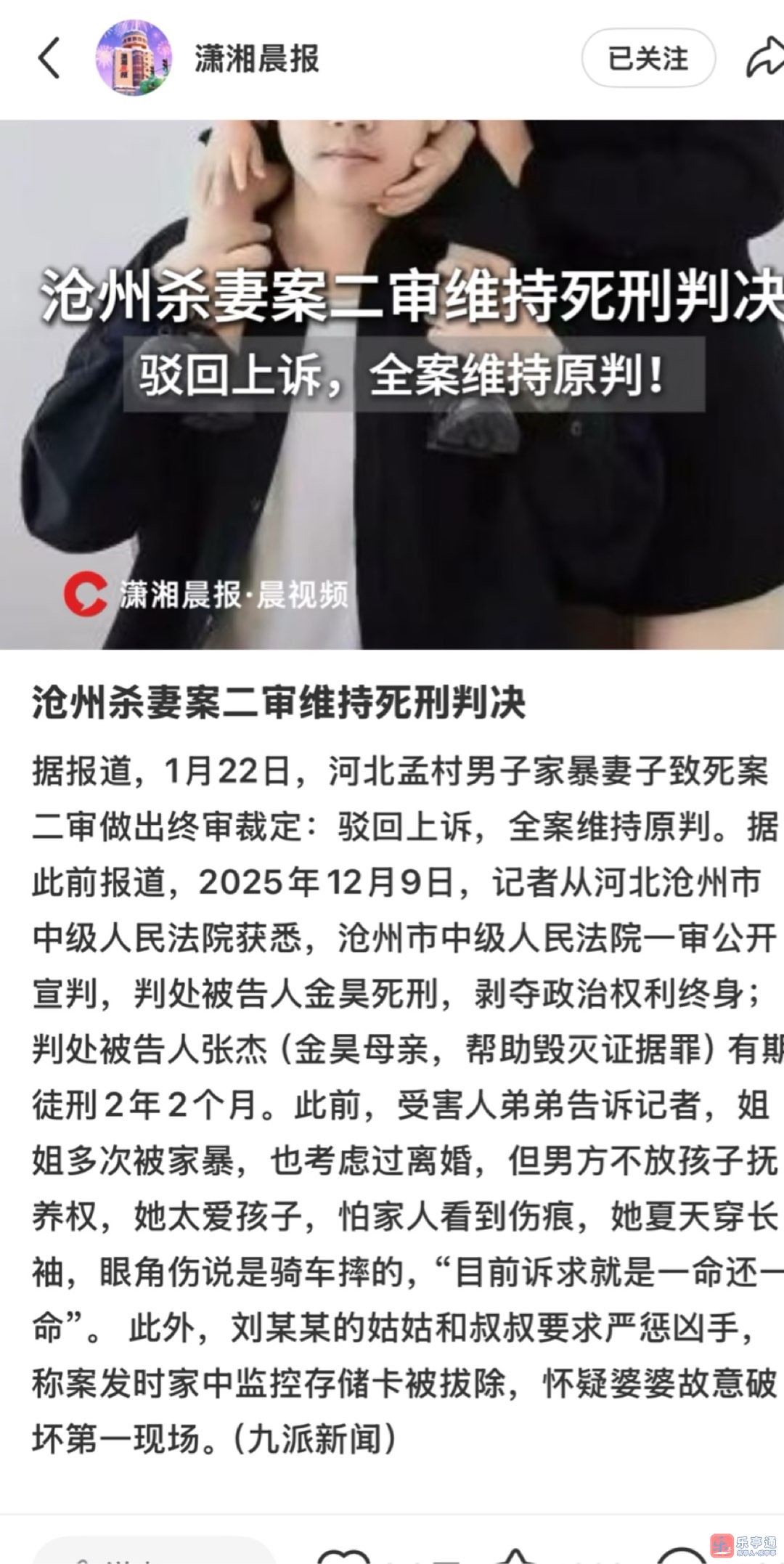 终审裁定!1月22日,河北孟村男子家暴妻子致死案二审:驳回上诉,维持原判!