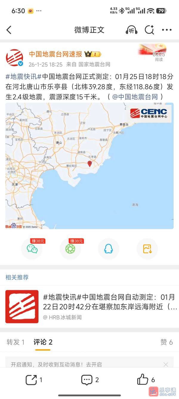 刚刚!乐亭县发生2.4级地震,你感觉到了吗?