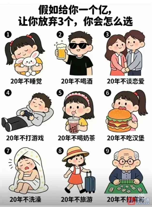 【2月27日晚8点红包】假如给你一个亿,让你放弃3个乐趣,你会怎么选?