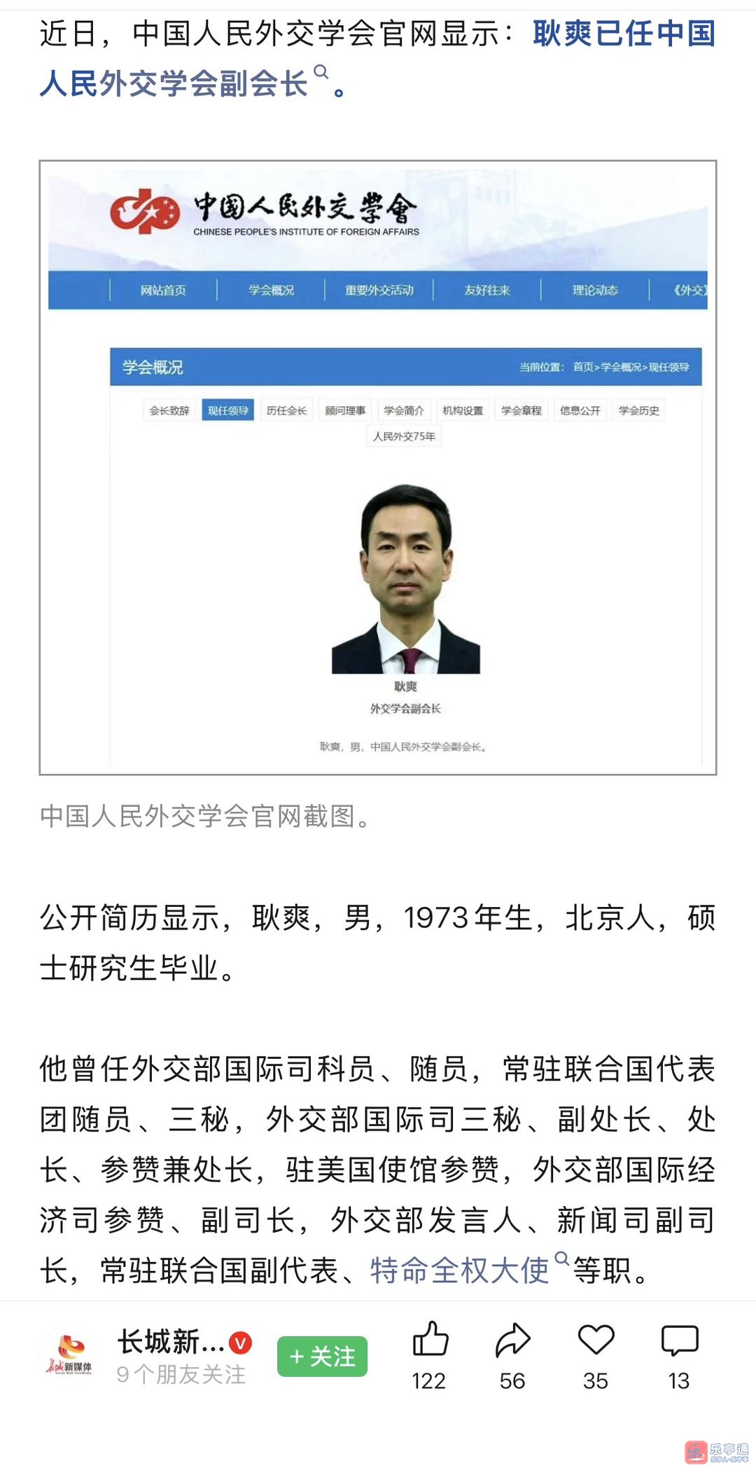 耿爽,履新职!