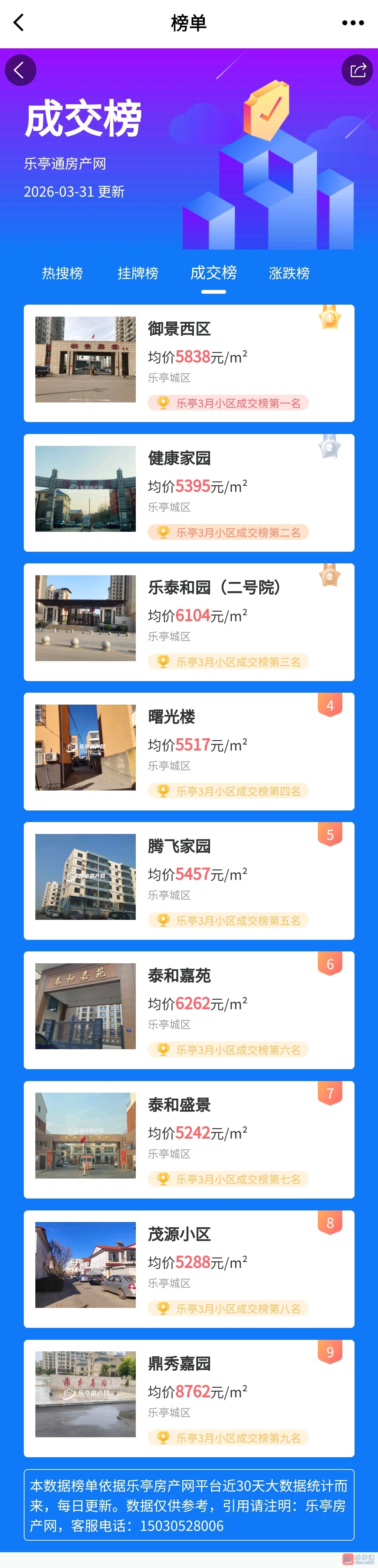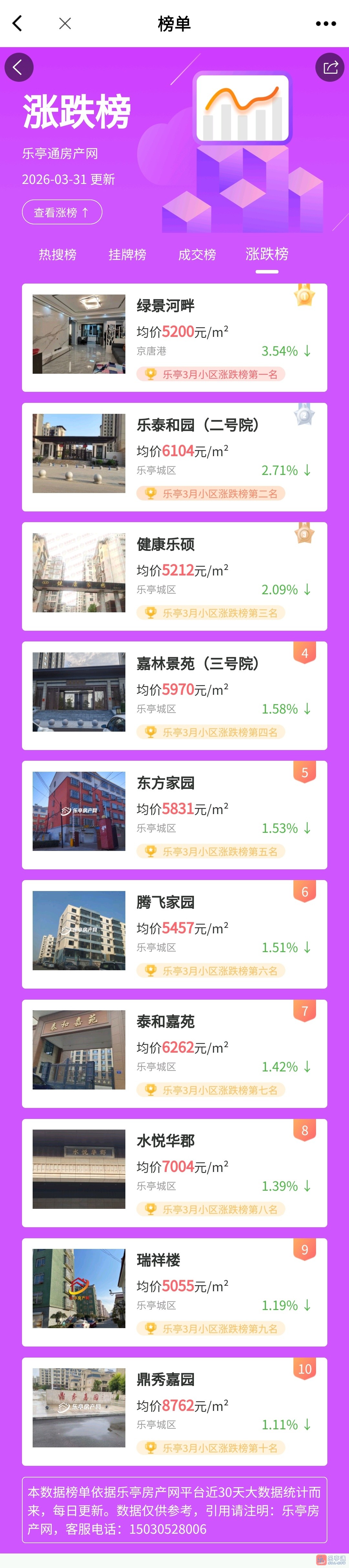最新,3月份乐亭房价数据来了!看看你家小区是涨还是降?
