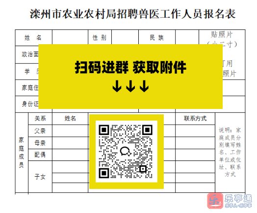附:《滦州市农业农村局招聘兽医工作人员报名表》