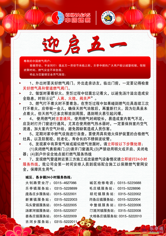 “五一” 假期将至,为全面压实安全生产主体责任,从严从细排查整治各类安全隐患,坚决防范遏制燃气安全事故发生,保障辖区用户安全稳定用气,乐亭中燃公司由总经理带队,对辖区燃气管网设施、场站燃气设备、工商用户用气场景、物资链库房等关键点位开展全覆盖、精细化安全大检查,以 “零容忍” 态度守牢安全底线,确保公司运营平稳有序。