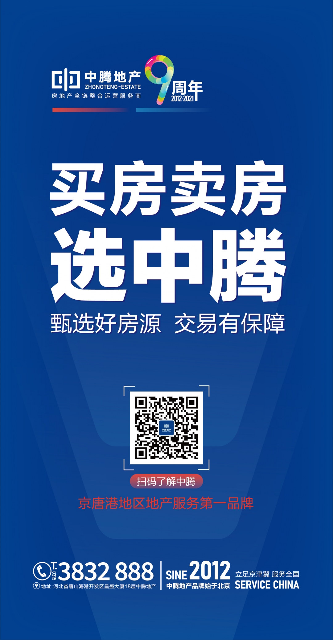 公司创始于2012年,从起初的4个人到现在的近百人团队,中腾地产已经成为一家集销售代理、顾问咨询、渠道整合,广告推广为一体的专业地产经纪服务公司,经过多年的打拼与积累公司营销团队被誉为“京津冀地区地产营销第一铁军”在京津冀地区屡创佳绩。公司本着立足京津冀地区服务全国市场的战略思维,已经形成了一套完整的地产营销与运营的生态体系。