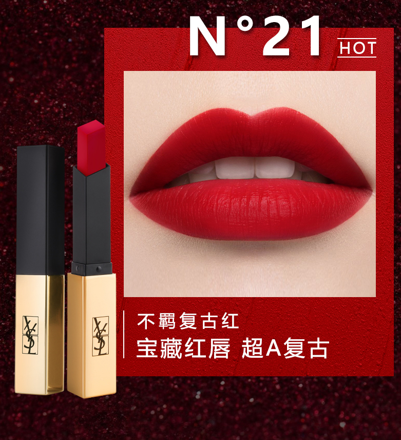 YSL圣罗兰小金条细管口红 哑光显白持久出色复古红21#