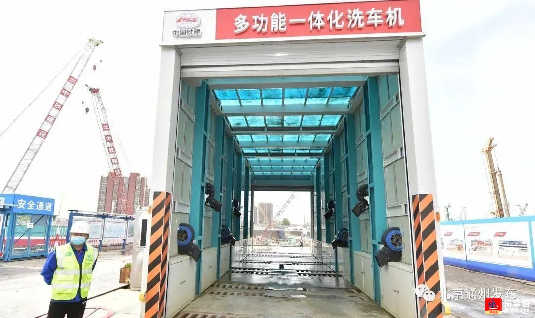 为积极响应北京市政府绿色施工号召,项目团队自主创新,研发多功能一体化洗车机,具有“智能感应”“环绕风干”“频率震动”等功能,搭配智能信息管控系统,全自动无需人工操作,方便快捷,达到“一次清洗达标率100%”的效果。