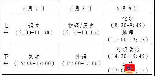 今年我省高考考试时间较2020年延长一天,为三天时间。语文科目考试时长为150分钟,数学、外语科目考试时长均为120分钟,选择性考试科目每科考试时长均为75分钟。我省高考在6月9日安排的是选择性考试科目的再选科目考试,考生在同一个考点但可能不在同一个考场参加考试,考生务必牢记自己参加考试科目的时间和考场,合理安排时间,谨防走错考场。![]()