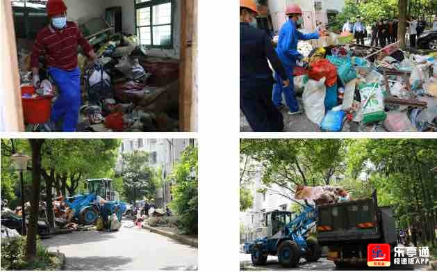 5月25日,上海宝山法院出动干警11人,在居委会、城建、城管、环卫、属地公安派出所、小区物业等单部门的参与和见证下,让董女士将贵重物品等妥善保管好后,开始强制清理。
