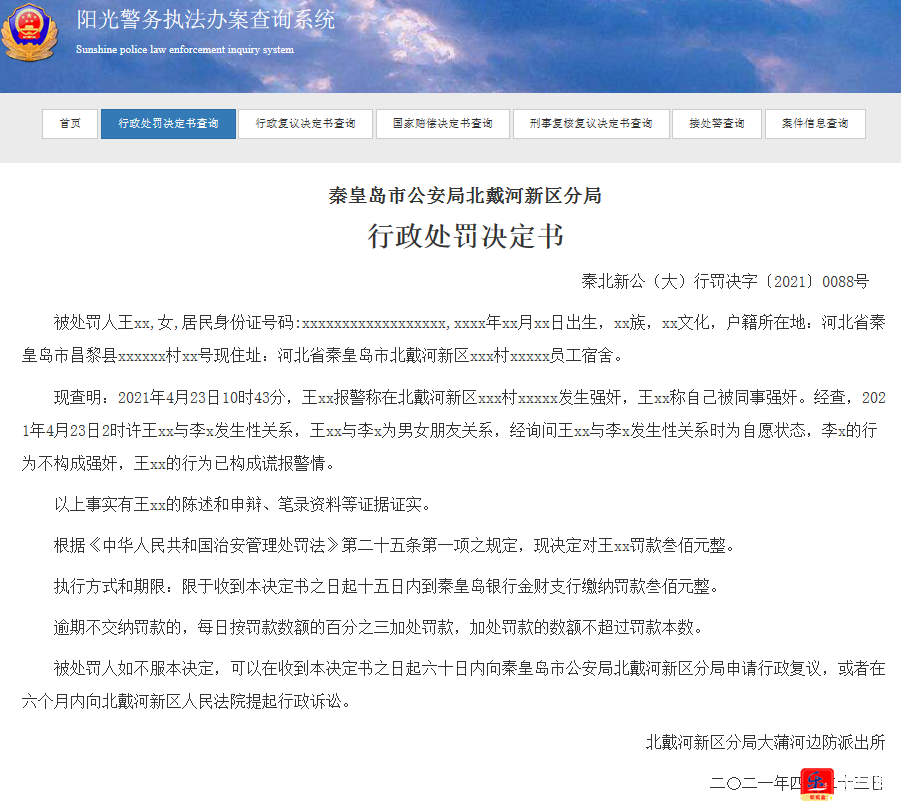 来源:阳光警务执法办案查询系统、秦皇岛身边事儿