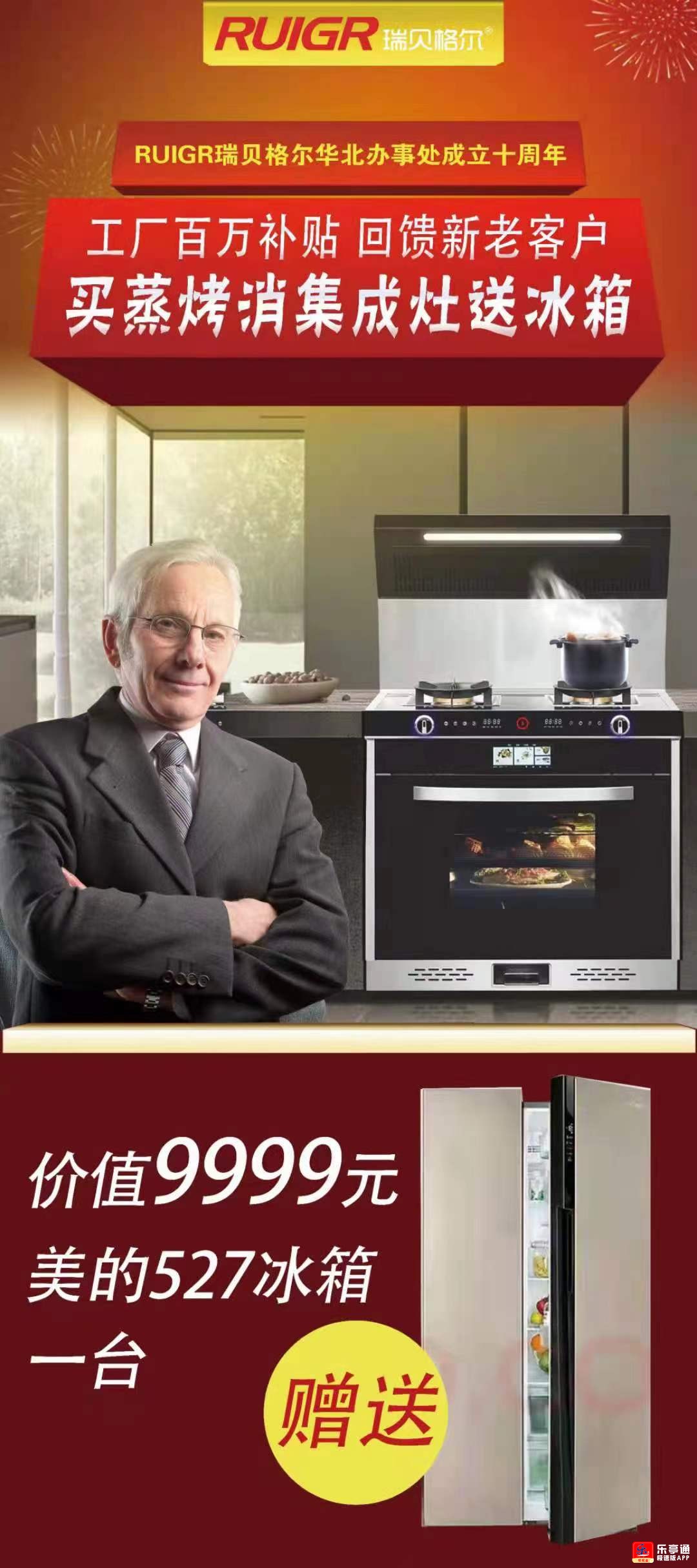 2.开业当天买9999元蒸烤消一体集成灶赠送美的双开门风冷527升家用电冰箱一台。