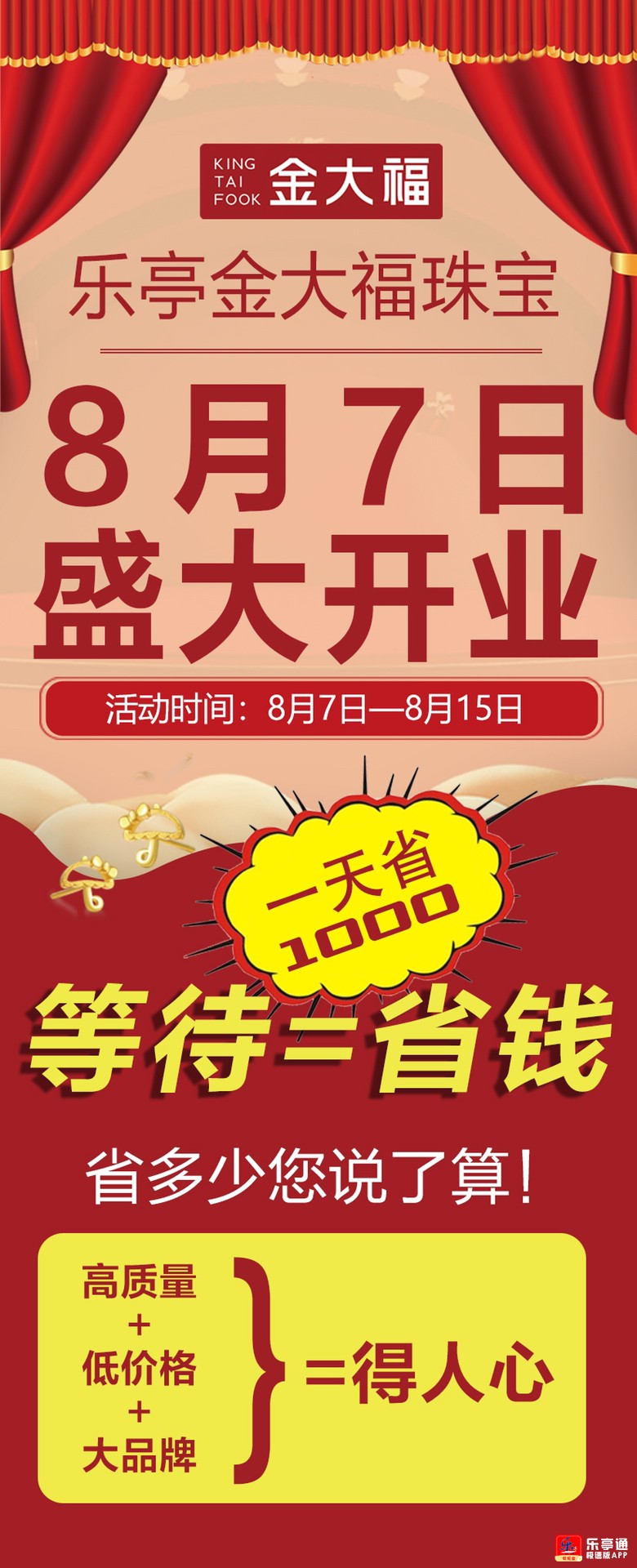 老板说:除了媳妇儿不送,上万件礼品免费送。乐亭金大福珠宝8月7日盛大开业!