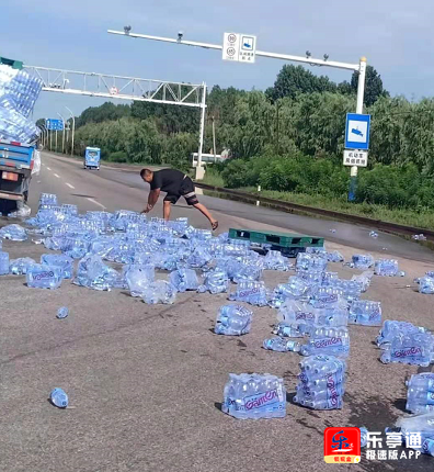 一辆拉矿泉水车侧翻,路人竟然....