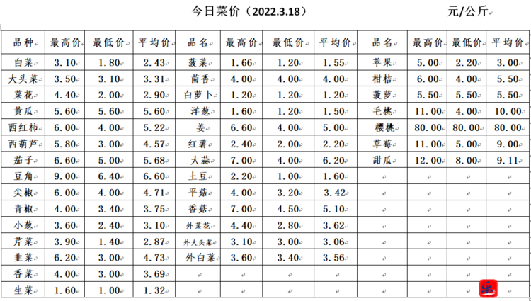 【果菜行情】3月18日乐亭县冀东果菜批发市场最新发布