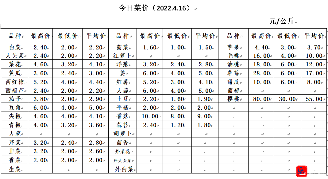 【果菜行情】4月16日乐亭县冀东果菜批发市场最新发布