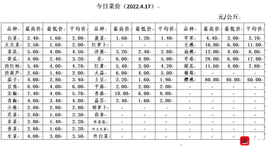 【果菜行情】4月17日乐亭县冀东果菜批发市场最新发布