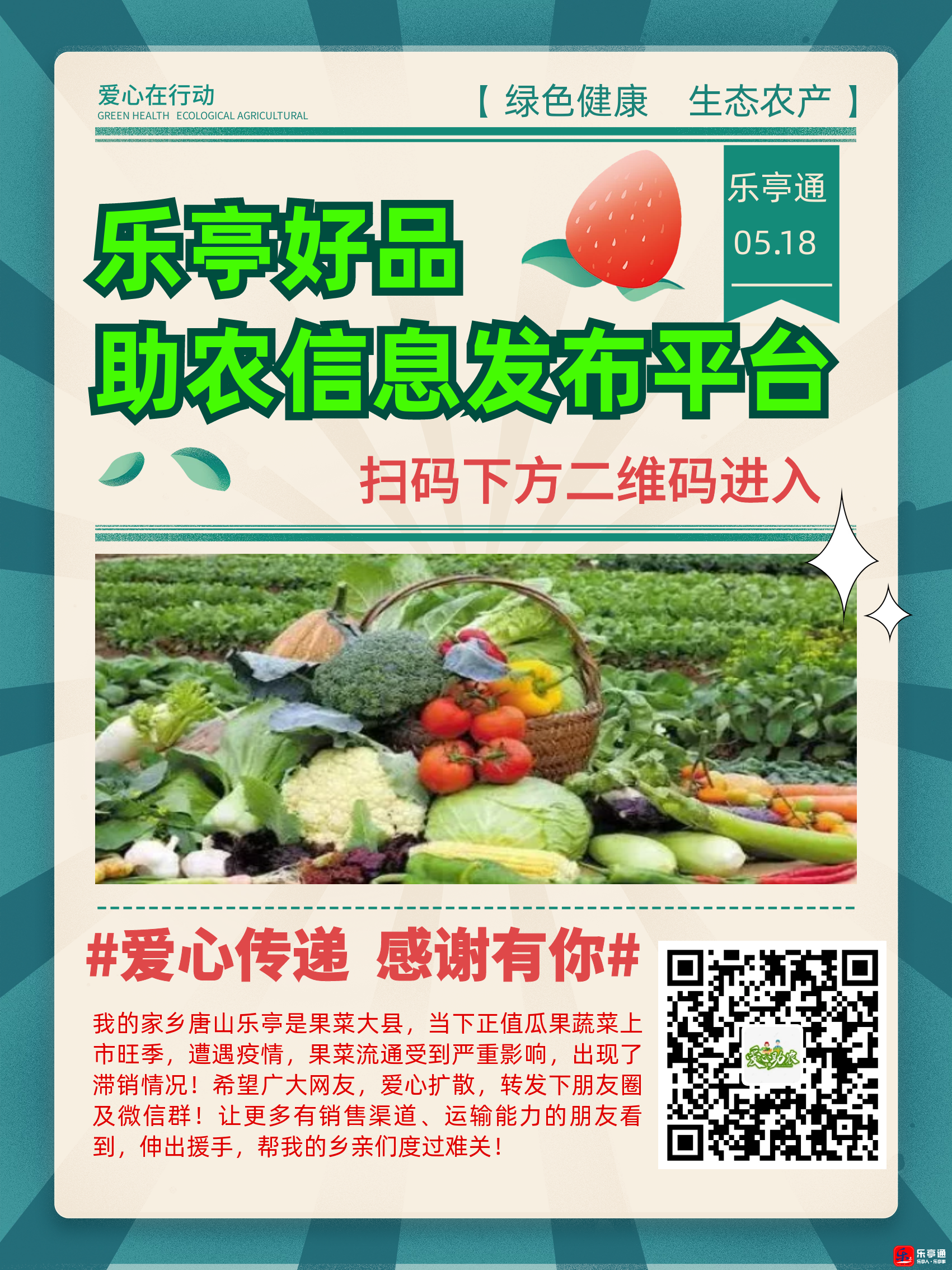 “乐亭好品“助农信息发布平台,免费为广大农户、经纪人、收购商及相关行业,发布农产品销售、收购、运输、服务等信息。
