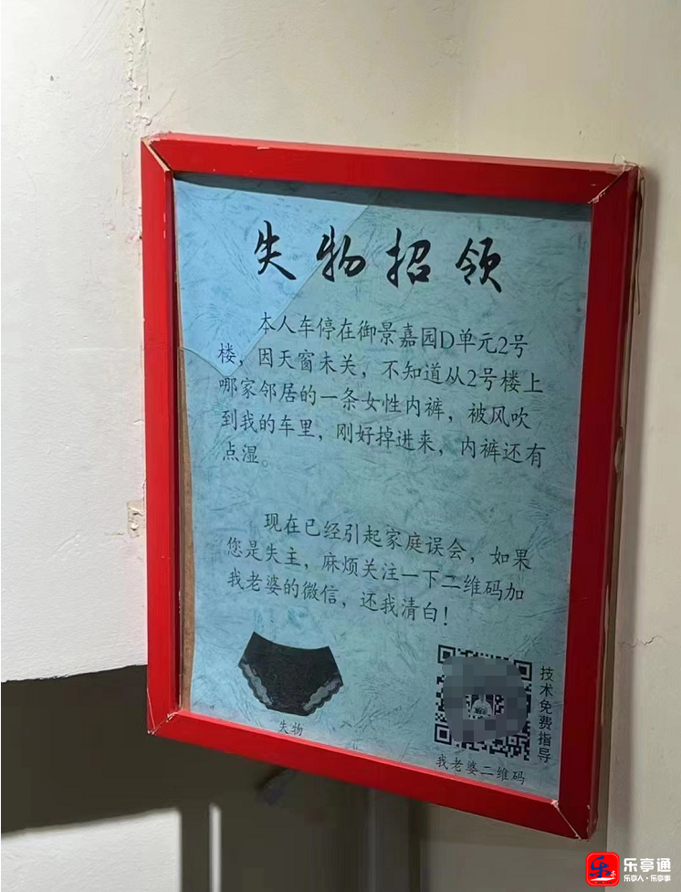 御景嘉园D区惊现奇葩失物招领!寻内裤主人还清白!真相竟是...