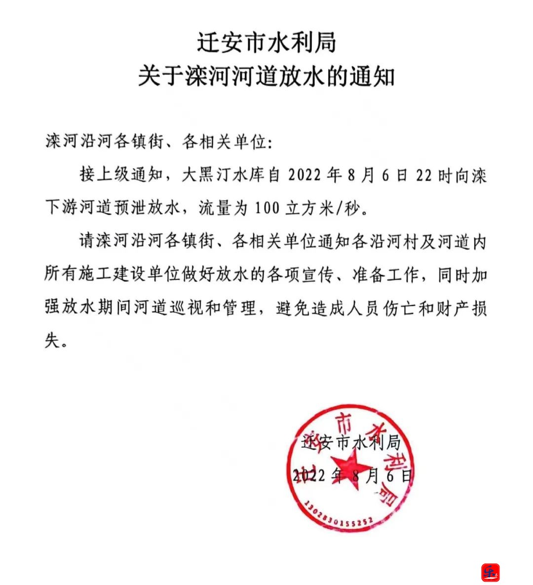 紧急提醒!滦河河道放水通知!