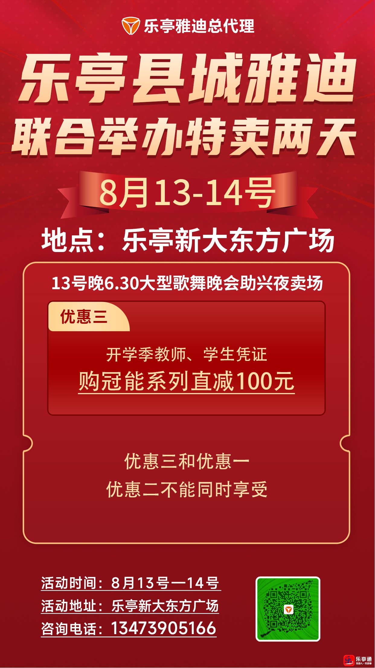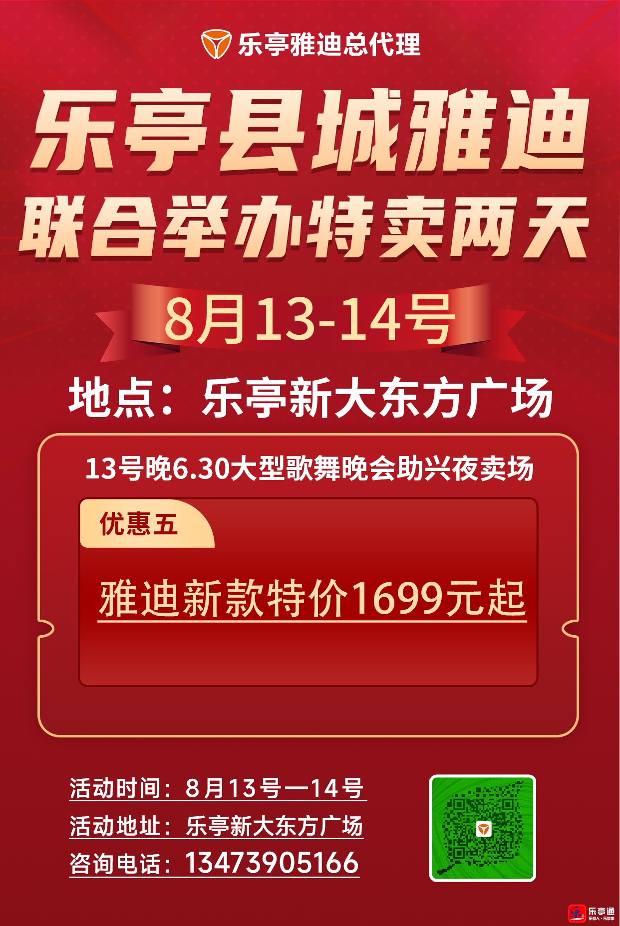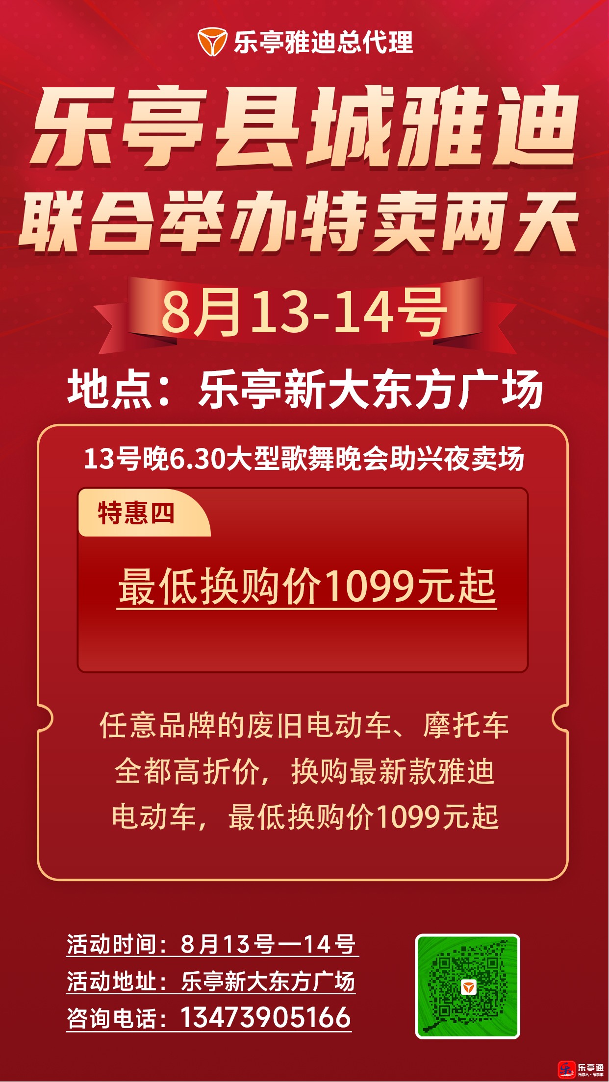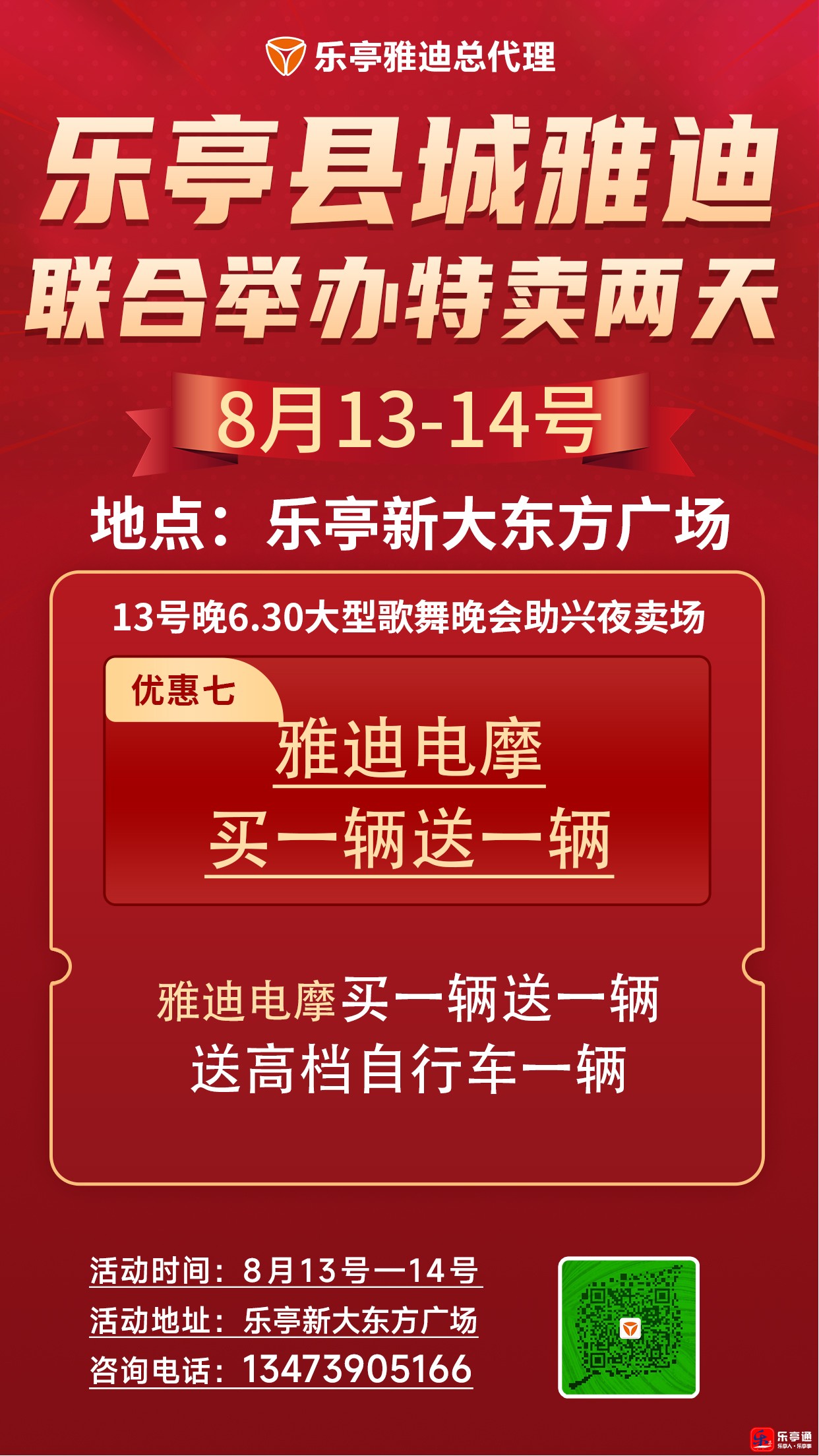 乐亭县城雅迪联合举办特卖两天(8月13-14号)