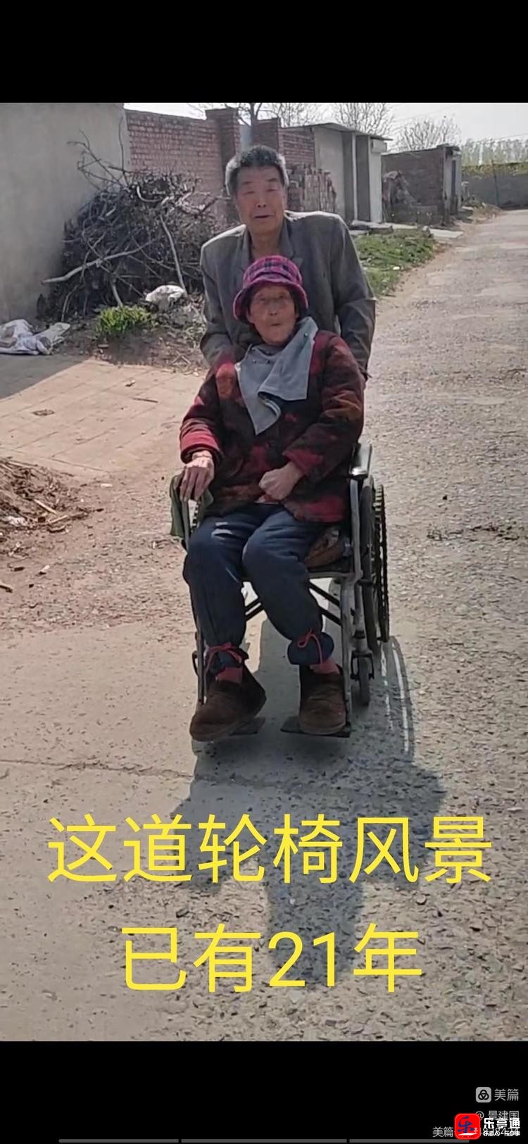 经了解,推轮椅的是75岁的周宝才老人,坐轮椅的是他的老伴,75岁的王廷芝老人。两位老人,一辆轮椅,这个画面已经长达21年,也让很多人心中,记住了一个长长的动人故事。
