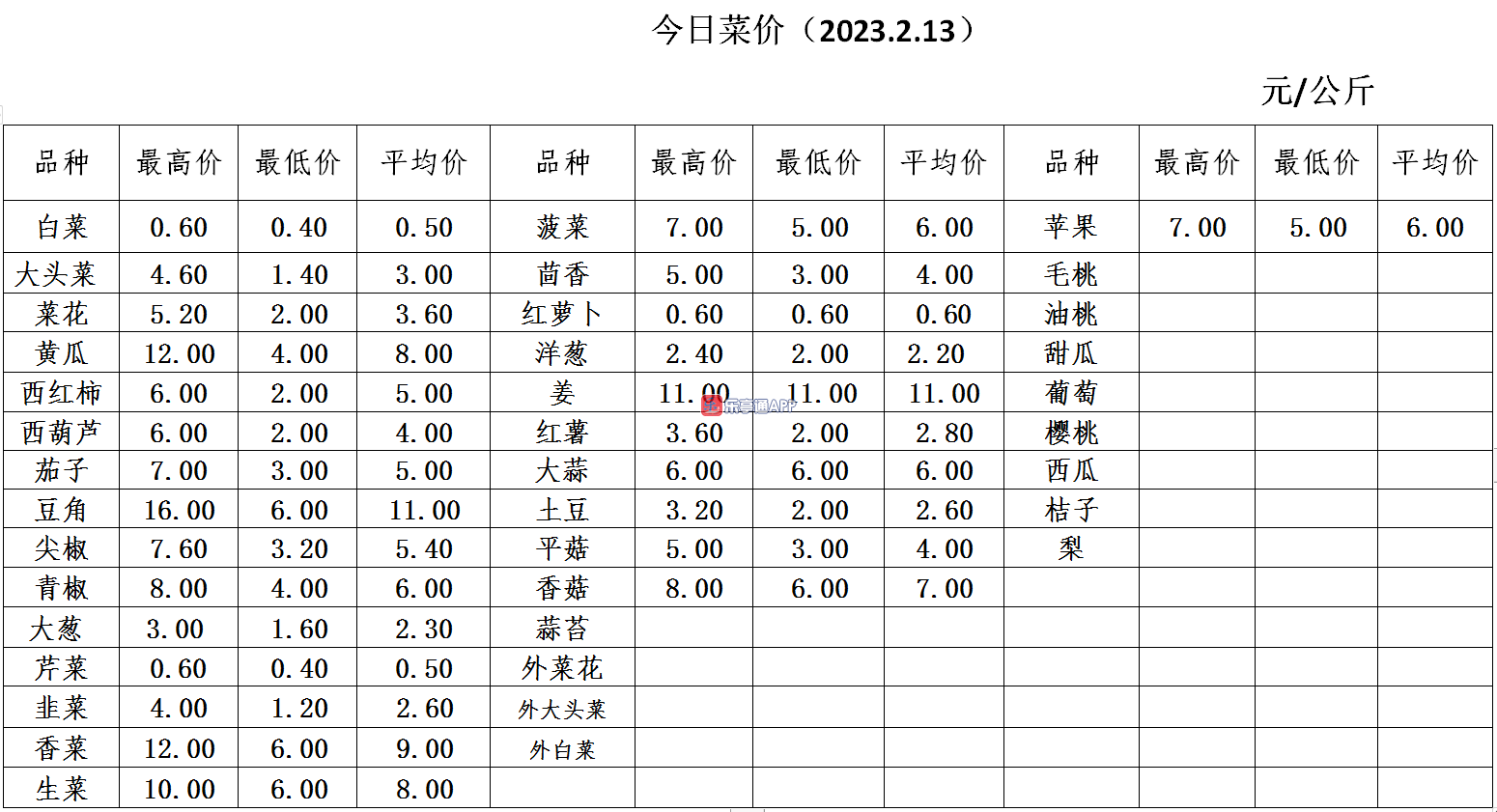 【果菜行情】2月13日乐亭县冀东果菜批发市场最新发布