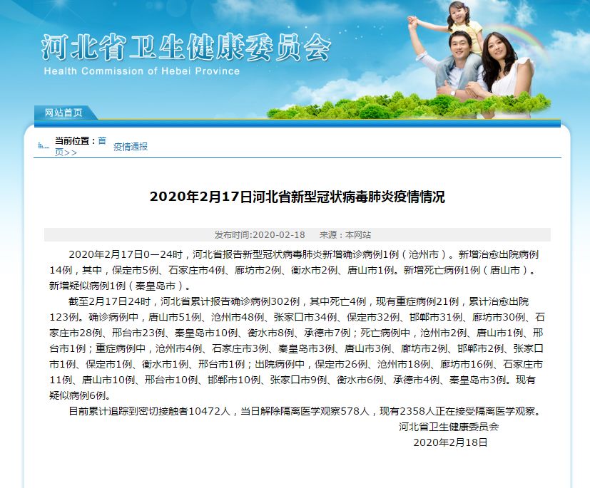 2.17唐山:新增死亡病例1例,无新增确诊病例,疑似病例!
