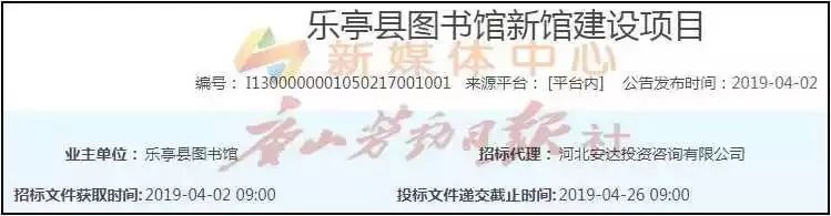 4月2日,中国河北网站发布乐亭县图书馆新馆建设项目、乐亭新华书店新址建设项目和乐亭县档案馆新馆建设项目招标公告。公告内容涉及建设地点、建筑面积、建设规模等信息。具体内容如下↓↓↓
