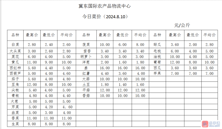 【果菜行情】8月10日乐亭县冀东果菜批发市场最新发布