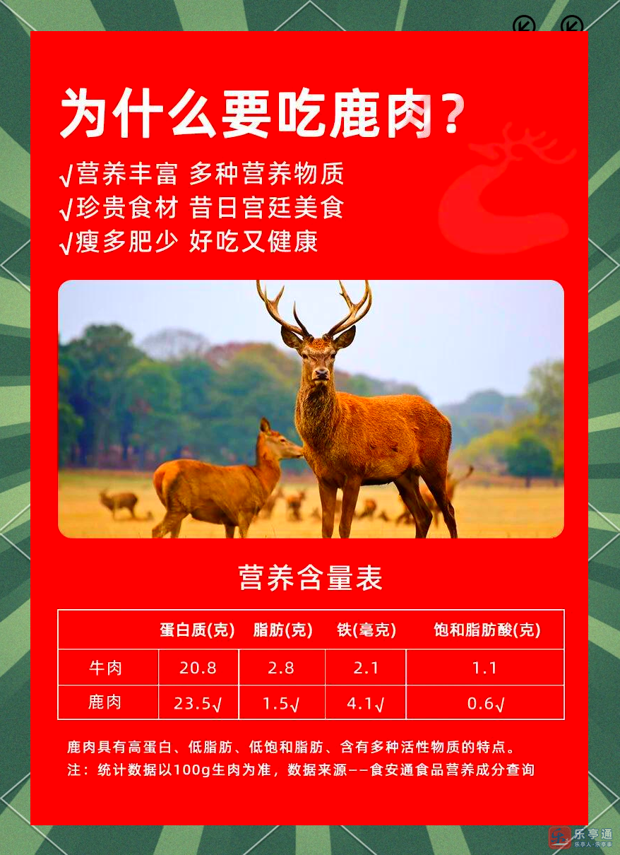 [爱心]昔日帝王宴 ,今日百姓餐[爱心]柏亿鹿业将定于本月 28 日现场宰杀活鹿。数量有限,提前预定,欢迎咨询。 送礼佳品,事业蒸蒸日上。(倍体面) 自食保健,身体延年益寿。(倍健康) 营养丰富,滋补养生鹿肉富含蛋白质、矿物质及多种维生素,是滋补养生的佳品。它不仅能够增强体质,还能有效改善血液循环,为您的健康护航。地址:唐山市乐亭县汀流河镇丰庄村东 500 米电话:18131533353 13472922733