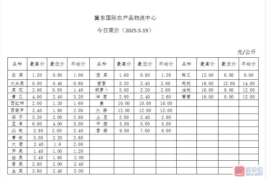 【果菜行情】5.19乐亭县冀东果菜批发市场最新发布