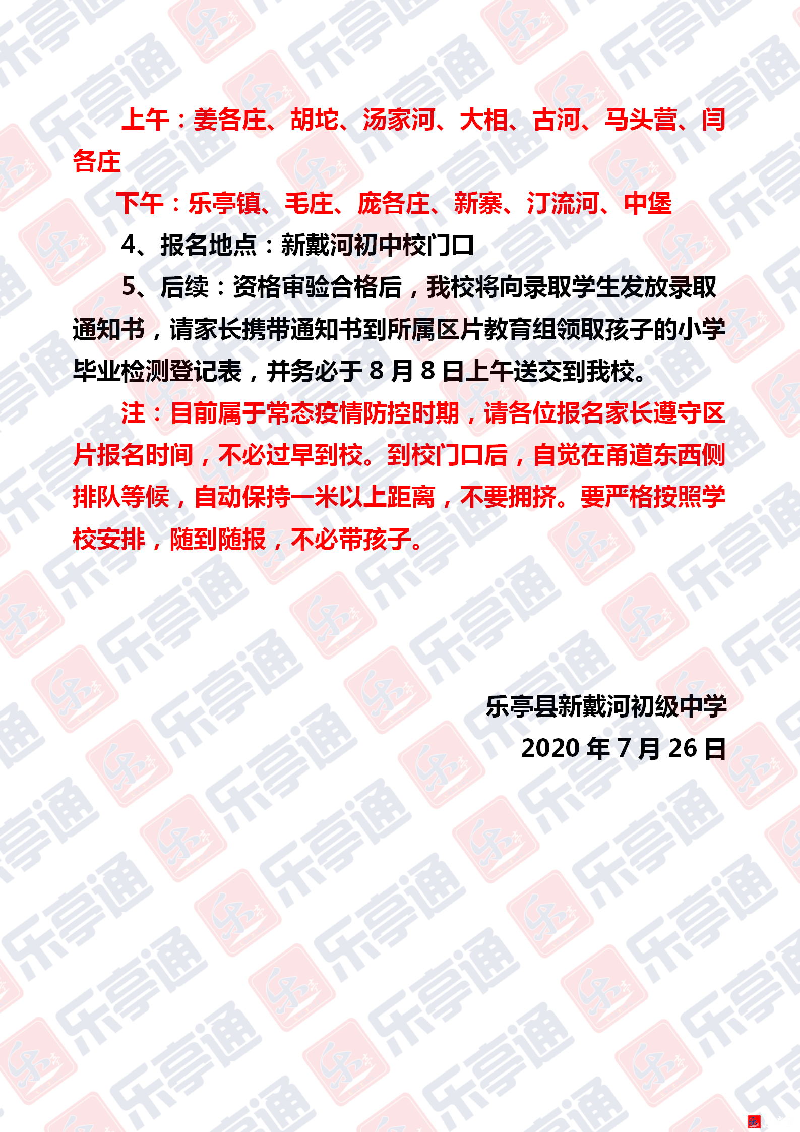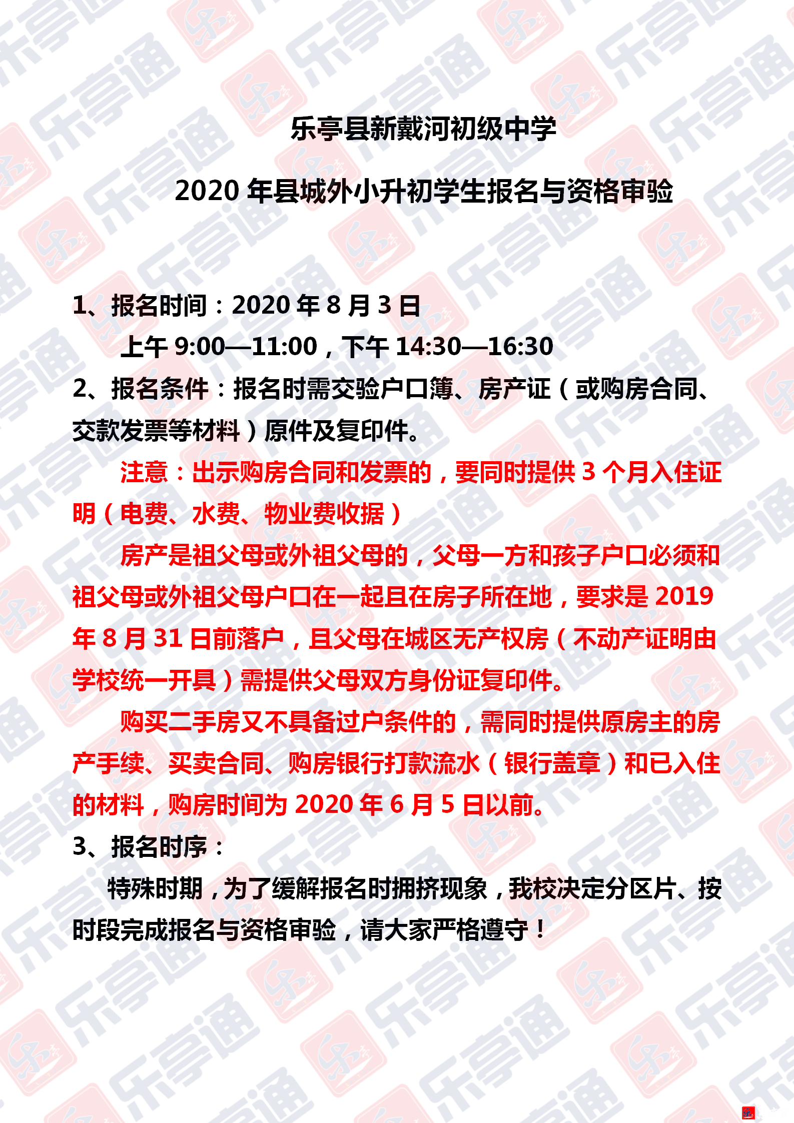 乐亭新戴河初级中学发布重要通知!事关2020年新生报名!